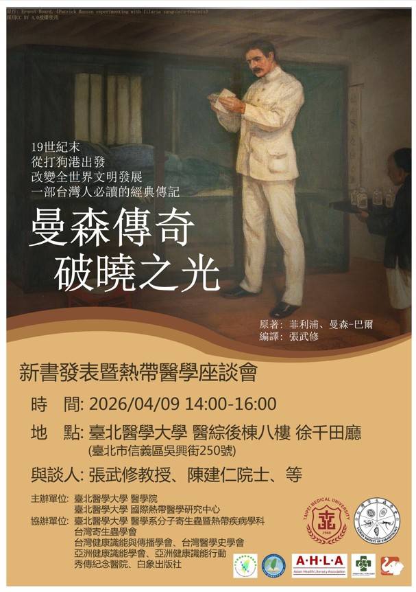 活動轉知:新書發表暨熱帶醫學座談會~曼森傳奇破曉之光,歡迎有踴躍參加~